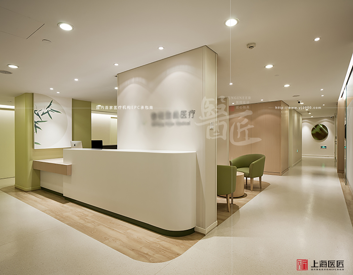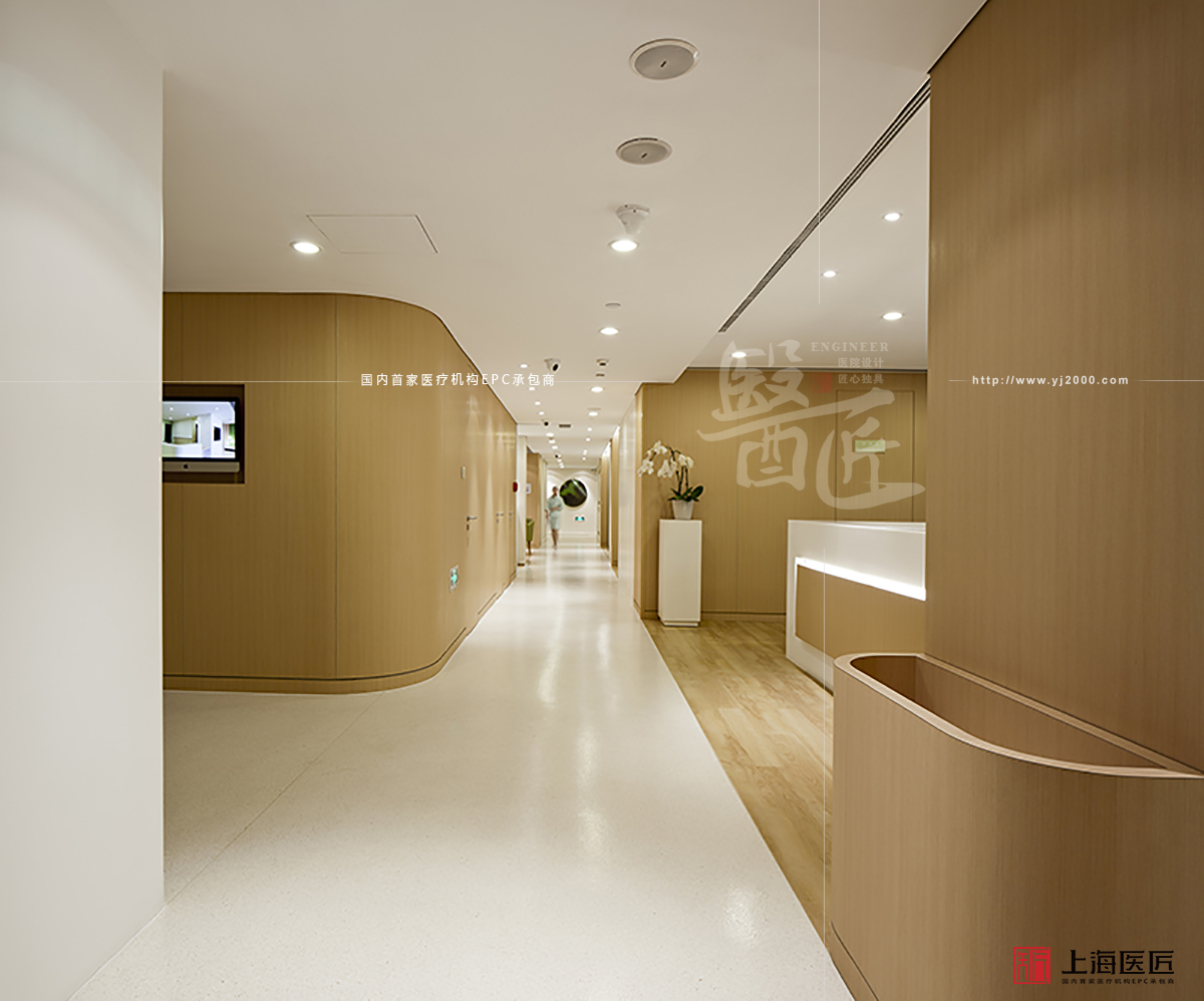 护理中心内部以浅色为基底,以大理石、木质为主要装修材料,具有耐腐防污、生态环保等特点,同时使整体空间和谐统一、舒适自然,给人一种干净大气的感觉。另外走廊的廊道上摆设着储物柜,与纹理清晰的原木地板一起营造了清新静谧的空间氛围。