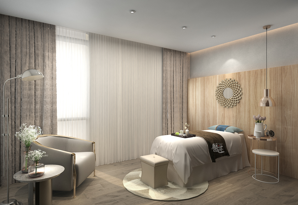 单调的颜色往往会导致空间的单调与沉闷,我们把所有的空间做了异形处理,会让人有种冲动揭开一道道的门,好奇里面到底是个怎样的空间。装饰方面我们选择了小而温馨的家具,线条流畅柔和,不仅符合亚洲人的娇美玲珑之感,墙面的挂画、地毯的布置、手工制品的摆放等营造出放松的氛围,轻奢的配饰牵引出整个项目活跃度,简洁高级的配饰,让空间变得更加舒适,能有效缓解或消除到院者的不良情绪。